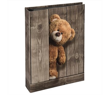 Pro zasouvání fotografií; desky z polaminovaného papíru; dětský motiv roztomilého medvídka; pro 200 fotografií formátu 10x15 cm; černé vnitřní stránky; černé štítky k popisu fotografií; pevná svařovaná vazba; kapsa pro úschovu CD; 100 stran