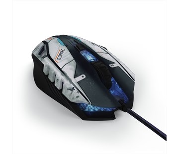 vysoce přesná gaming.myš, moderní ergonomický design, vyměnitelný SciFi kryt, optický senzor, Omron spínače, teflonové kluzné plochy, příjemný, neklouzavý povrch, vícebarevné podsvícení, opletený kabel, rychle nastavitelné DPI (600/1200/1800/2400 DPI), 6 rychlých tlačítek, 1000 Hz USB polling rate