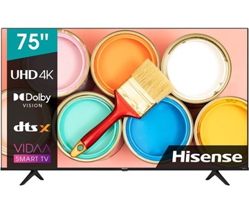 LED televize • úhlopříčka 191 cm (75") • UHD rozlišení (3840×2160 px) • HDR10+/HLG • PCI 1600 Hz • tunery DVB-T2/T/C/S2/S • Wi-Fi • HDMI 2.0 • 2× USB • CI+ slot • sluchátkový výstup • zvukový výkon 30 W • DTS Virtual X • herní režim • Dolby Vision • webový prohlížeč • HbbTV 2.0.3 • Bluetooth • energetická třída G • VESA 20×30 cm • operační systém VIDAA U5.1
