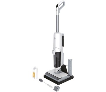 aku víceúčelový vysavač • příkon 220 W • duální válečkový systém • mokré i suché vysávání • 30 minut provozu • režim SMART • pro všechny typy tvrdých podlah • funkce automatického čištění • LED displej • příslušenství: 2× náhradní váleček (A + B), náhradní filtr, detergent, čisticí kartáček pro důkladné čištění a nabíječka