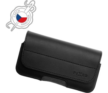 Ručně šité univerzální pouzdro z pravé hovězí kůže FIXED Posh představuje elegantní a originální doplněk pro váš mobilní telefon. Díky termoplastickému tvarování drží vyztužený tvar a poskytne tak plnou ochranu pro vložený telefon. Pouzdro je určeno pro nošení na opasku, kovový klip na zadní straně snadno připnete i odepnete k pásku do šíře 4 cm. Snadné vyjmutí telefonu je zajištěno pomocí vytlačovacího systému ve spodní části pouzdra, zavírání je jištěno kvalitními magnety.