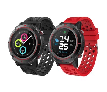 chytré hodinky • 1,3" barevný dotykový IPS LCD displej (rozlišení 240×240 px) • GPS • Bluetooth • smart notifikace • senzor tepové frekvence • výpočet spálených kalorií • monitor denní aktivity a spánku • režimy pro různé sportovní aktivity (chůze, běh, cyklistika…) • funkce telefonování • ovládání hudebního přehrávače v telefonu • předpověď počasí • odolnost IP68 • výdrž až 6 dní (bez připojení ke smartphonu) • barva černá s červenými linkami (v balení 2 řemínky – černý a červený)