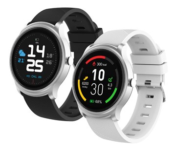 chytré hodinky • 1,3" barevný dotykový IPS LCD displej (rozlišení 240×240 px) • Bluetooth 4.2 • smart notifikace • měření srdečního tepu • výpočet spálených kalorií • monitor denní aktivity a spánku • režimy pro různé sporty • funkce Find Watch • odolnost IP68 • předpověď počasí • výdrž až 14 dní (bez připojení k telefonu) • barva stříbrná • v balení 2 vyměnitelné silikonové pásky (bílý + černý)