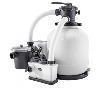 Vysocevýkonná filtrace pro všechny INTEX bazény. Křemičitý písek, který klade protékající vodě z bazénu přirozený odpor, zachycuje v mezerách většinu nečistot. Vyčištěná voda se pak opět vrací zpět do bazénu. Písková filtrace a její princip se používá i při čištění pitných vod. Kvalitní výkonná písková filtrace Intex Krystal Clear se zabudovaným solinátorem zajistí optimální filtraci pro váš bazén a omezí používání bazénové chemie. Tato filtrace přefiltruje 10 m3 bazénové vody za hodinu. Filtrace je primárně určená k bazénům Intex, Bestway a Tampa, tomu jsou přizpůsobená i všechna připojení, na která našroubujete klasické bílé hadice s průměrem 38 mm s šedou závitovou koncovkou.