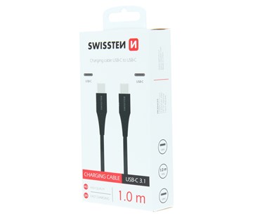 TPU kabel USB-C/USB-C s délkou 1m je vhodný pro nabíjení smartphonů v nových automobilech. Baleno v blistru SWISSTEN