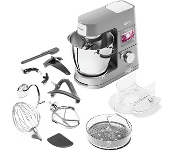 kuchyňský robot • příkon 1500 W • 6,7l nerezová pracovní mísa • dotyková obrazovka CookAssist • 13 automatických programů SimpleTouch • vhodný pro šlehání, míchání, hnětení, indukční vaření, vaření v páře • planetární míchání • technologie indukčního vaření • vestavěná váha EasyWeigh • rameno LightLift • nástavce EasyClean • časovač • ochranné víko • příslušenství –? balónová šlehací metla, flexi metla, hnětací hák, K-metla, míchací nástavec, napařovací koš, špachtle, ochranná víka • hmotnost 10,4 kg (bez pracovní mísy)
