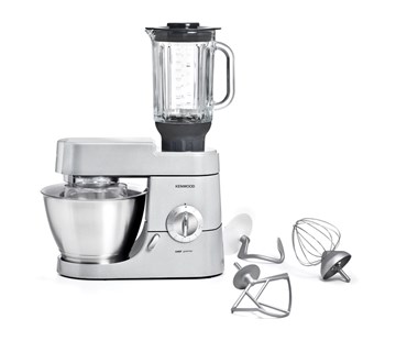 kuchyňský robot • příkon 1000 W • 4,6l pracovní mísa • plynulá regulace rychlosti • vhodný pro šlehání, míchání, hnětení, mixování, mletí • planetární míchání • ThermoResist mixér odolný vůči vysokým teplotám • kovové tělo • příslušenství - šlehací metla, K-metla, hnětací hák, 1,5l mixér, mlýnek na maso • hmotnost 11,67 kg
