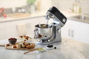 Robot Kenwood KMX 750 BK je model v robustním celokovovém provedení v barevné kombinaci černé a stříbrné.