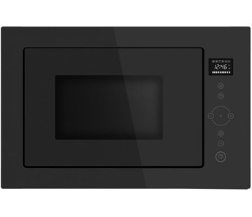 vestavná mikrovlnná trouba • objem 25 l • mikrovlnný výkon 900 W • výkon grilu 1100 W • 8 automatických programů • 5 úrovní výkonu mikrovln • otočný talíř o průměru 31,5 cm • rozmrazování • produktová řada Perfect Black • dotykové ovládání • LED displej • zvukový signál při ukončení procesu • vnitřní osvětlení • časovač až na 95 minut • 38,8×59,5× 40,1 cm