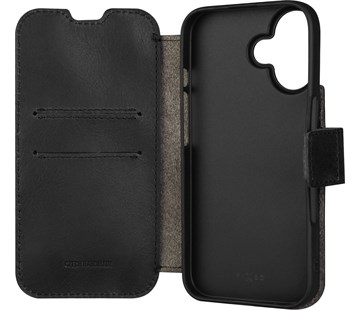 Kožené pouzdro typu kniha FIXED ProFit pro Apple iPhone 16, černé