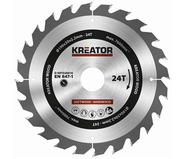 Ideální pro řezání různých druhů měkkého a tvrdého dřeva., Počet zubů - 24, Rozměr - 190 x 30 x 2,2 mm