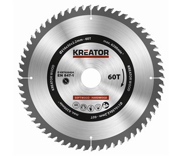 Ideální pro řezání různých druhů měkkého a tvrdého dřeva., Rozměr - 216 x 30 x 2,2 mm, Počet zubů - 60