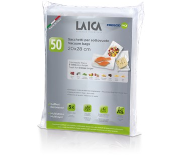 Vakuové sáčky 20x28cm, 50ks. Sáčky se skládají ze 4 vrstev. TLOUŠŤKA 4VRSTVÉ FÓLIE: 90 µm (hladká, vnější, nerýhovaná vrstva fólie). 90 µm (strukturovaná, vnitřní žebrovaná vrstva fólie) Materiál použitý k výrobě je bezpečný pro potraviny, 100% bez BPA: Vnější vrstva POLYAMID PA