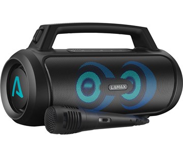 bezdrátový party reproduktor • Bluetooth 5.3 • baterie s výdrží až 15 h • výkon 50 W • funkce powerbanky • FM rádio • možnost připojení mikrofonu (drátový mikrofon v balení) • 3 režimy LED podsvícení • možnost ovládání přes zařízení s OS Android/iOS • madlo na přenášení • technologie LAMAX BeatBass • 3,5mm jack konektor • slot na paměťovou SD kartu • USB-A vstup • odolnost IP67