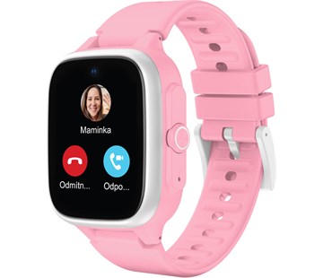 chytré hodinky pro děti • 1,4" barevný dotykový displej (rozliišení 240 × 240 px) • určování polohy PinPoint (GPS, LBS, A-GPS, Wi-Fi, akcelerometr) • nano SIM slot s podporou 4G/LTE (v balení SIM karta T-Mobile 200 MB) • videohovory • funkce FriendsConnect (propojení až 60 kamarádů) • funkce FamilyCareConnect (propojení rodinných příslušníků) • monitor denní aktivity • SOS tlačítko • výdrž až 120 h • odolnost vůči prachu a vodě IP68 • barva růžová
