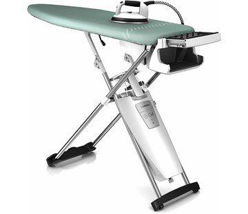 | Žehlicí prkno disponuje ventilátorem se dvěma rychlostmi. Parádní technologií je vakuový systém, který dokáže udržet žehlenou látku na místě. Zároveň vytvoří vzduchový polštář, čímž brání tvorbě záhybů. Nastavit si můžete až 6 poloh (82 - 102 cm). Součástí prkna je také teplu odolný box k odložení žehličky. Ke snadnému přemísťování žehlicího prkna slouží dva páry integrovaných koleček. S jeho skladováním nebudete mít žádný problém, díky patentovanému sklopnému systému, s jehož pomocí jej lze složit na šířku pouhých 20 cm. |