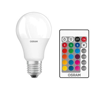 LED žárovka Superstar CLASSIC A 60 9,4 W, RGBW E27 s ovladačem, provedení LED, Stmívatelná, Patice E27, Příkon 9,4 W, Světelný tok 806 lm, Barva světla RGBW nebo 2700 K teplá bílá, ovládání dálkovým ovladačem, možnost změny barvy a čtyři dynamické efekty, Náhrada za běžnou žárovku o výkonu 60 W