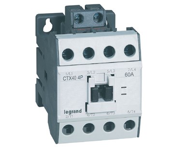 Legrand 416436 průmyslový elektromagnetický stykač CTX, 40 až 900A, čtyřpólový, bez integrovaného pomocného kontaktu, ovládací napětí 230V, vyhovuje dle norem IEC 60 947-1, IEC 60 947-4-1, max. provozní proud AC 1: 60 A, max. provozní proud AC 3: 40 A montážní hloubka 95mm, EAN 3414970403681