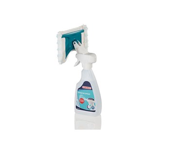 Čistič na okna o objemu 500 ml s rozprašovačem a integrovaným mopem na okna, návlek na mop je vyroben ze speciálního mikrovlákna, které přitahuje a zachycuje nečistoty. Návlek lze prát v pračce bez aviváže.