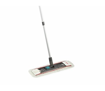 mop včetně bavlněné náhrady 50 cm široké (s úchyty), s plně pohyblivým kloubem, který umožňuje mopu dostat se i na těžce dostupná místa, s patentovaným nášlapným mechanismem, teleskopická tyč s protiskluzovým zakončením tyče, náhradu lze prát v pračce bez aviváže na 95°C, záruka 5 let