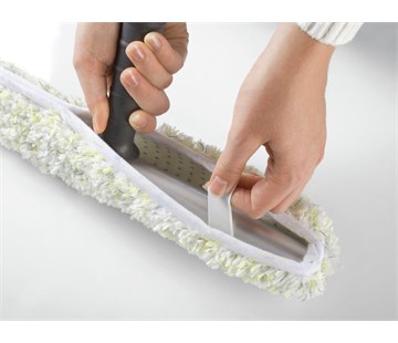 stěrka s náhradou, šířka 45 cm, horní část vyrobená z anodizovaného hliníku, vyztužená plastová rukojeť, náhrada ze speciálního polyesteru s vysokou absorpcí vody