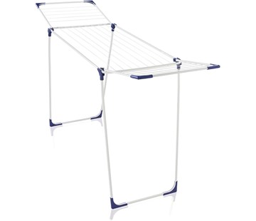 stabilní sušák na prádlo s výklopnými bočnicemi, ideální pro vnitřní i venkovní použití, 18 m sušící plochy = až 2 pračky prádla, výška sklápěcích bočnic 100 cm, možnost zavěšení dlouhých kusů oděvů, 4 otvory pro zavěšení ramínek, záruka 3 roky