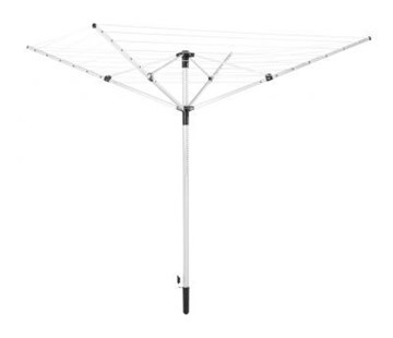 venkovní sušák,nastavitelná výška 1,38 - 1,80 m, možnost zavěšení až 12 ramínek, délka šňůr 50 m = až 5 praček prádla, délka nejvzdálenější šňůry od středu: 1,76 m, úhlopříčka 2,55 m, součástí balení: držák na zabetonování a ochranný obal, průměr středové tyče 45 mm, barva: stříbrná