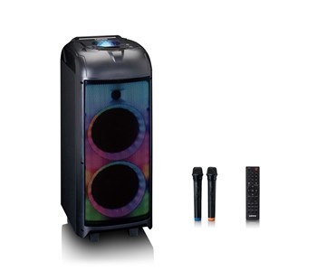 Pokud rádi zpíváte, můžete také k reproduktoru snadno připojit kabelový mikrofon, popř. i kytaru. A aby toho nebylo málo, v balení najdete i dvojici bezdrátových mikrofonů. |
