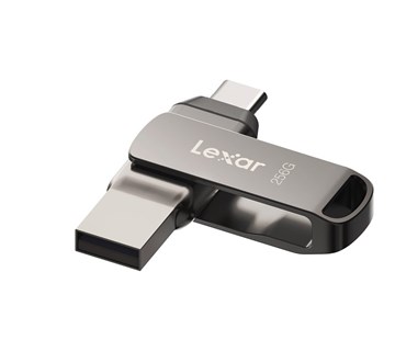 USB flash disk Lexar D400, kapacita 256GB, Duální USB flash USB-C & USB-A 3.1, čtení až 130MB/s, prémiový kovový design, šedá barva, poutko pro uchycení, zabezpečení Lexar Datashield