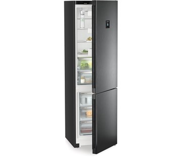 en.třída C; Kombinovaná chladnicka s BioFresh a NoFrost, objem 360l (158/99/103), DuoCooling, BluPerformance, FlexCube, Touch&Swipe-Display na dveřích, inetg. SmartDevice, zapuštěné madlo, SuperSilent, BlackSteel