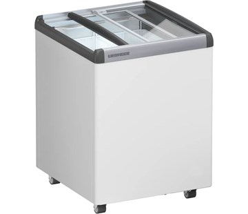 Truhlicová mraznička 144 litrů; statický chladicí systém (boční pěnový výparník a kondenzátor); 2 posuvná skleněné víka (možno doobjednat zámek); vypínatelné vnitřní přední LED osvětlení; rozsah chlazení: -10 / -24 °C; mechanické ovládání; analogové zobrazení teploty; vnější ocelový plášť s bílým práškovým nástřikem; šedý vícedílný hliníkový a plastový kompozitní rám; bílý ocelový vnitřní plášť; čisticí otvor; bez košíků (maximální počet košíků: 2 - 1 malý, 1 velký); ruční odmrazování; 4 pogumov