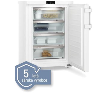 šuplíková mraznička • energetická třída D • objem mrazničky 93 litrů • hlučnost 37 dB • klimatická třída SN–T • mrazicí výkon 8,5 kg potravin za 24 hodin • akumulační doba 9,5 hodiny • 4 šuplíky • systém VarioSpace • technologie NoFrost • technologie FrostProtect • dotykový panel TouchControl • integrovaný SmartDeviceBox • LED osvětlení • madlo s integrovaným otevíracím mechanismem • zaměnitelné otevírání dveří • 85×60×60,7 cm