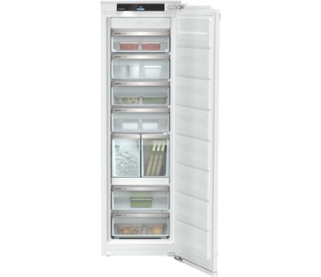 en.tř. D; Vestavná mraznička s NoFrost, Pevné dveře, objem 213l, 33dB(A), SuperFrost, 8 zásuvek, IceMaker, 5x teleskopické pojezdy, AutoDoor, IceTower, SmartDevice, panty vpravo
