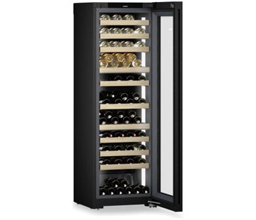 en.třída F; Vinotéka temperovaná 3 zónová, objem 357l, max.počet lahví Bordeaux 0,75l- 104 ks, materiál polic: bukové dřevo, počet úložných ploch 11, integ. SmartDevice, Digitální ukazatel teploty pro 3 oddělené klimatické zóny, Teplotní rozsah +5°C až +20°C, Presentation Light, Zámek elektronický (bez DO), SuperSilent, Zapuštěné madlo, Dveře: Izolační sklo, UV Protect Plus, Černé sklo