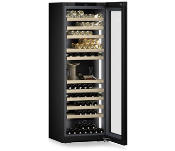 en.třída F; Vinotéka temperovaná 3 zónová, objem 561 l, max.počet lahví Bordeaux 0,75l- 145 ks, materiál polic: bukové dřevo, Sommelier board, počet úložných ploch 11, integ. SmartDevice, Digitální ukazatel teploty pro 3 oddělené klimatické zóny, Teplotní rozsah +5°C až +20°C, Presentation Light, Zámek elektronický (bez DO), SuperSilent, Zapuštěné madlo, Dveře: Izolační sklo, UV Protect Plus, Černé sklo