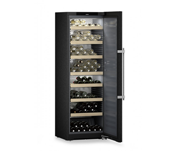 en.třída E; Vinotéka temperovaná 2 zónová, objem 349 l, max.počet lahví Bordeaux 0,75l- 155 ks, materiál polic: bukové dřevo, počet úložných ploch 8, integ. SmartDevice, LED osvětlení, Digitální ukazatel teploty pro 2 oddělené klimatické zóny, Teplotní rozsah +5°C až +20°C, plné dveře, madlo s integ. mechanikou, Černá