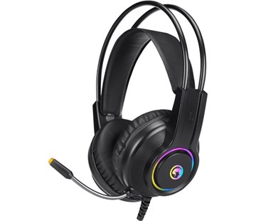 sluchátka s mikrofonem,ovládání hlasitosti,černá,podsvícená,USB;Zvuk:stereo;Frekvenční rozsah:20 Hz–20 KHz;Oreproduktoru:50 mm;Impedance reproduktoru:16 Ohm;Citlivost reproduktoru:108 dB±3dB;Typ mikrofonu: všesměrový;Velikost mikrofonu:6x5 mm;Podsvícení:Rainbow;Citlivost mikrofonu:-42dB±3dB