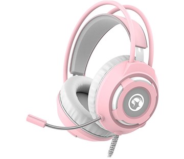 sluchátka s mikrofonem,ovládání hlasitosti,růžová;Zvuk:stereo;Frekvenční rozsah:20Hz–20KHz;Oreproduktoru:50mm;Citlivost reproduktoru:108dB±3dB;Typ mikrofonu:všesměrový;Vel.mikrofonu:6x5mm;Citlivost mikrofonu:-38 dB ±3dB;Podsvícení:bílé;Připojení:2 x 3.5 mm jack+USB(napájení podsvícení)
