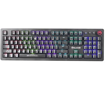 Klávesnice US, herní, drátová (USB), černá, mechanická, PUBG klávesy;Podsvícení: mix barev (rainbow);Makro klávesy;Multimédia + kolečko pro ovládání hlasitosti;Typ klávesnice: mechanická (modré spínače);Kompatibilní s: Windows 7 a vyšší