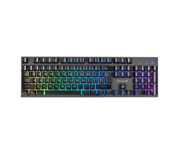 klávesnice;CZ/SK;herní;membránová;hloubka/síla stisku:3.6±0.3mm/50±10g;připojení USB-kabel 1.5m;12 multimediálních kl;anti-ghosting: 19 kláves;podsvícení RGB Rainbow(lze vypnout);OS:Win7/8/10/11;životnost kláves:? 10mil. stisknutí;měkký stisk a tichý provoz-ideální i pro každodenní práci v kanceláři