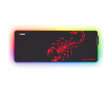 podložka pod myš; extra velká - 80 x 30 cm; hladký povrch z mikrovlákna - příjemný na dotek, snižuje tření zápěstí; podsvícený okraj(RGB Rainbow - několik různých barev a tři efekty); protiskluzová spodní strana; integrovaný 4-portový USB 2.0 hub; prošité okraje; připojení: USB; délka kabelu: 1.8 m
