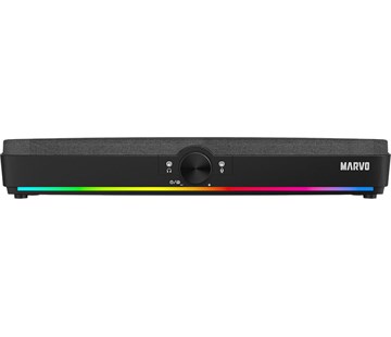 | Pod označením Marvo SG-286 se skrývá stylový soundbar, který má velmi široké pole působnosti. Jeho prostřednictvím totiž můžete spolehlivě ozvučit celou řadu přístrojů, od notebooku či stolního počítače až po menší televizor. Ať už pak budete sledovat filmy, hrát hry, nebo poslouchat muziku, vždycky se dočkáte kvalitního zvuku – soundbar se může pochlubit stereo konfigurací 2.0 (2 měniče o velikosti 2,5"), výkonem 2× 5 W a frekvenčním rozsahem 60 Hz – 20 kHz. Připojení soundbaru je realizováno prostřednictvím rozhraní USB, popř. lze přístroj ovládat i pomocí bezdrátové technologie Bluetooth 5.3. Propojovací kabel měří na délku 1,5 metru. |  |