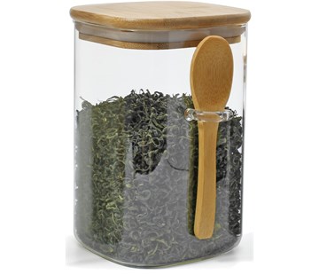 Objem 1000 ml; Rozměry: 16 x 10 x 12 cm (výška x šířka x hloubka) - včetně víčka a ucha; Elegantní organický vzhled; Dokonalé utěsnění potravin, díky integrovanému silikonovému těsnění; Přírodní bambusové víčko; Přírodní bambusová lžička; Praktické ucho pro uložení bambusové lžičky; Kvalitní borosi