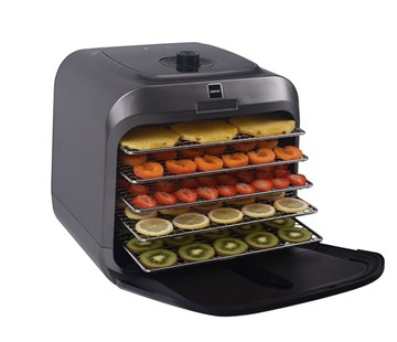 |  | Spotřebič disponuje 5 automatickými programy k sušení různých surovin. Jednotlivé programy si můžete navolit pomocí otočného knoflíku na vrchní straně spotřebiče. Dokonce si můžete zvolit i manuální režim, při kterém si můžete sami nastavit teplotu v rozmezí 35-75 °C a také i čas od 1 až do 99 hodin. Veškeré nastavení je zobrazeno na přehledném LED displeji s modrým podsvícením. Vysoký 500W výkon zajistí rovnoměrné usušení potravin i s vysokým podílem vody. |