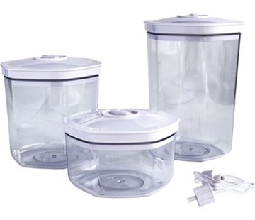 Vakuovací dózy pro uložení potravin bez působení vzduchu, čímž je revolučně prodloužena jejich trvanlivost. Díky vakuování si potraviny uchovávají přirozenou čerstvost a kvalitu. Vhodné do chladničky i mrazničky. Možno mýt v myčce na nádobí.
