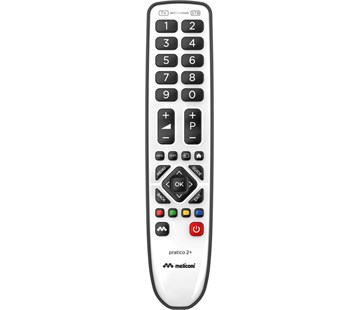2v1, pro ovládání 1 televizoru a 1 externího dekodéru, všechny infračervené funkce originálních dálkových ovladačů, ergonomický tvar a tělo z měkké gumy, režim Combo, LEARN, přímý přístup k funkci Home chytrých TV, 2 x 1,5 V baterie typu AAA/LR03