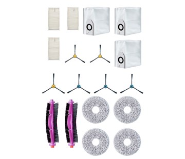 Boční kartáč 6 x, rotační hlavní kartáč 2 x, HEPA filtr 3 x, mopovací poduška 4 x, sáček na prach 3x