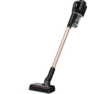 tyčový aku vysavač, příkon 160 W, hlučnost 79 dB, plošný výkon 60 m2, objem prach. nádoby 0,3 l, doba nabíjení 3,5 h, výdrž na 1 nabití 55 min, SpeedLock, filtr Hygiene, elektrokartáč, sací štětec, hubice na čalounění, pro vysávání spár, flex. sací hadice, Electro Compact, hmotnost 3,1kg