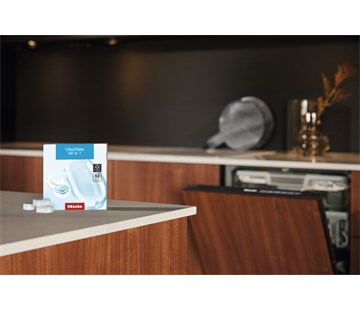 Tablety do myčky nádobí, bez obsahu fosfátů, s více funkcemi, jako je leštidlo, sůl a ochrana skla, žádné vybalování díky rozpustné biologicky odbouratelné fólii