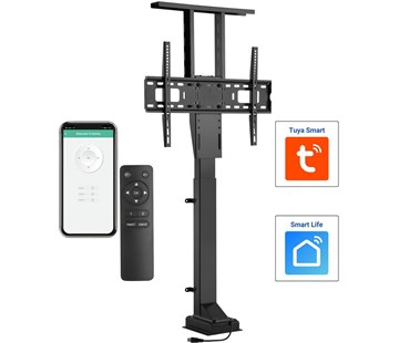 SMART motorizovaný výsuvný držák na TV 37" až 65", které mají maximální rozteč VESA 600x400 mm. Možnost ovládání přes aplikaci v mobilním telefonu, kompatibilní aplikace TUYA pro Android i iPhone, Nosnost 50 kg. Rozsah pohybu nahoru dolů 680 - 1580 mm. Dálkové RF ovládání.